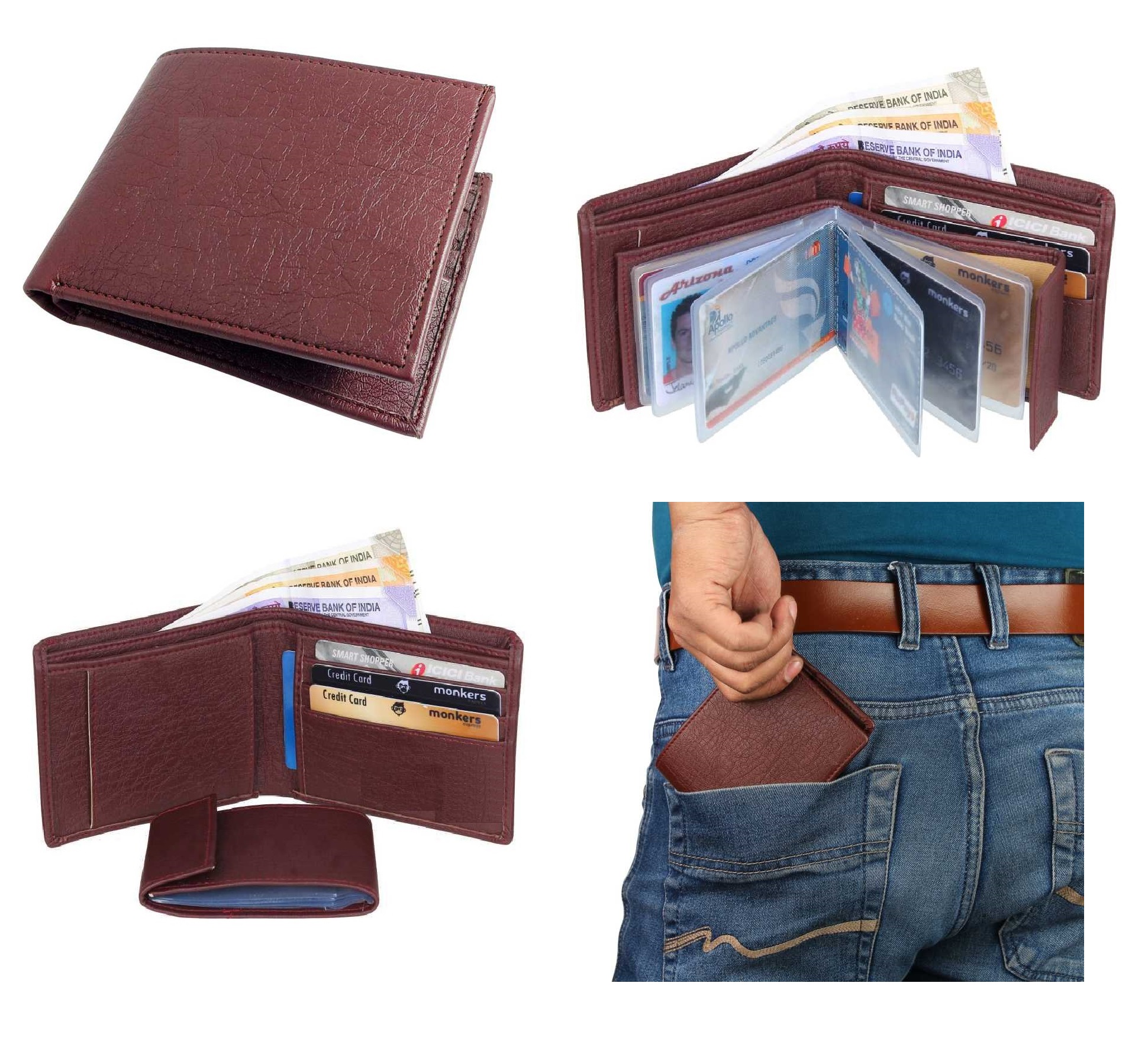 This is a high-quality classic bifold wallet from Dezire Crafts made of Leather.The multiple compartments help keep everything you need.Organized and secure while looking chic and sophisticated. Hand stitched, dyed and aged to last a lifetime.This Classic wallet will show your style every time you pull it out.It features multiple credit card slots and two compartments for cash.PU LEATHER: Precious Italian puleather with nice and smooth texture, really soft to touch.NEAT AND USEFUL COMPARTMENTS – there are 2 pockets for notes, 3 card slots and 2 hidden slots for credit / business cards. DESIGNER WALLET